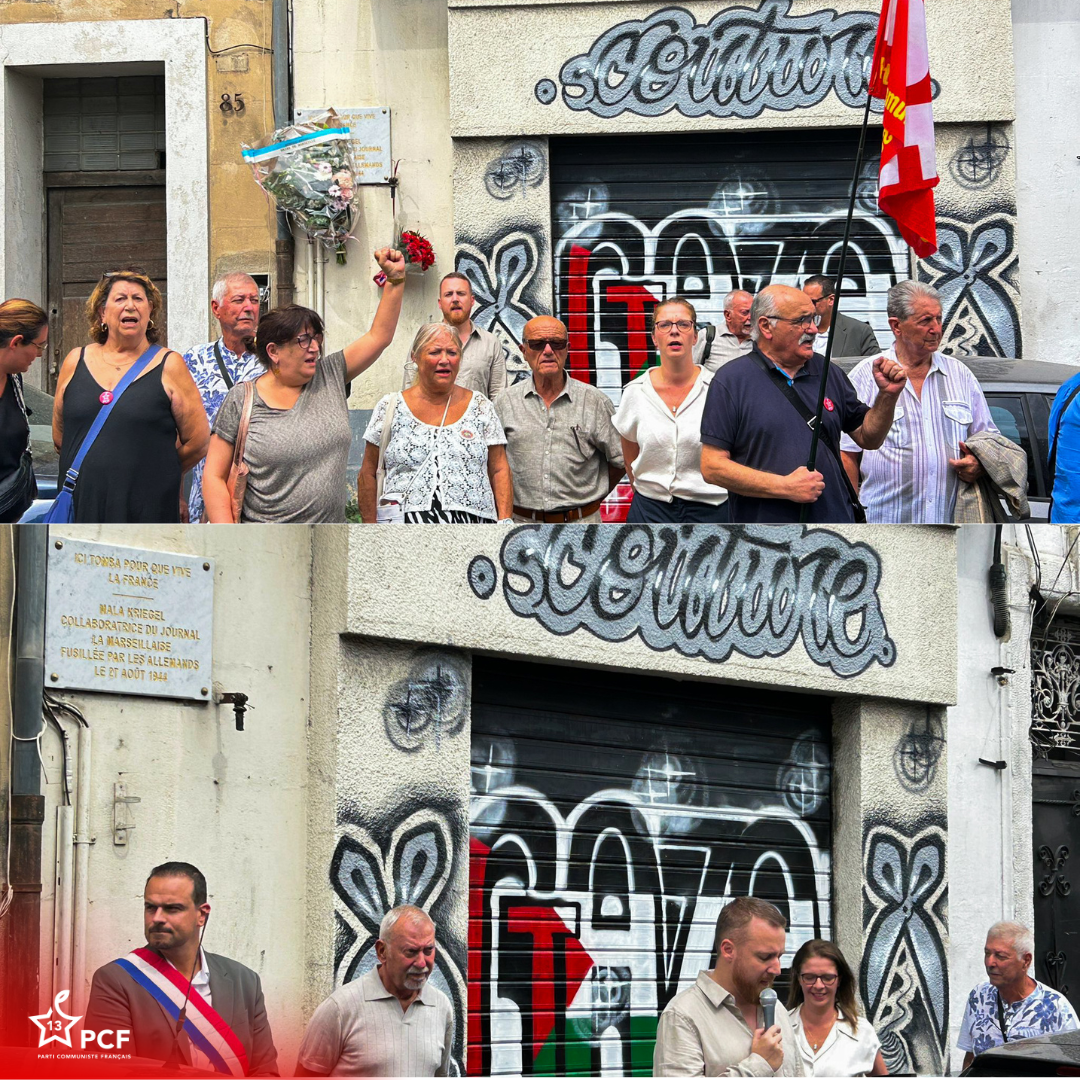 L’hommage rendu boulevard Oddo fut marqué par une forte présence militante et fraternelle. Aux côtés du journal La Marseillaise et de son président Léo Purguette, notre secrétaire départemental Jérémy Bacchi, ainsi que la section du PCF 15 et son secrétaire Joël Dutto ont pris part à cette cérémonie. Tous ont souligné combien la mémoire de Mala Kriegel doit demeurer vivante et inspirante pour les générations actuelles et futures.